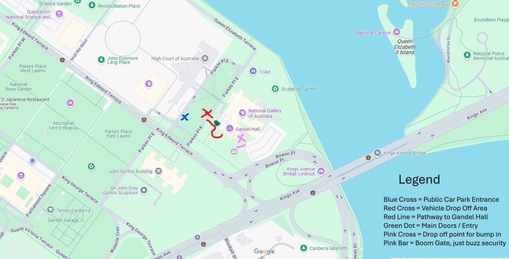The ACII 2025 Gala Dinner will be held at Gandel Hall at the National Gallery of Australia (not the National Portrait Gallery!). The NGA is about 1.5km away from the conference venue at Hotel Realm.